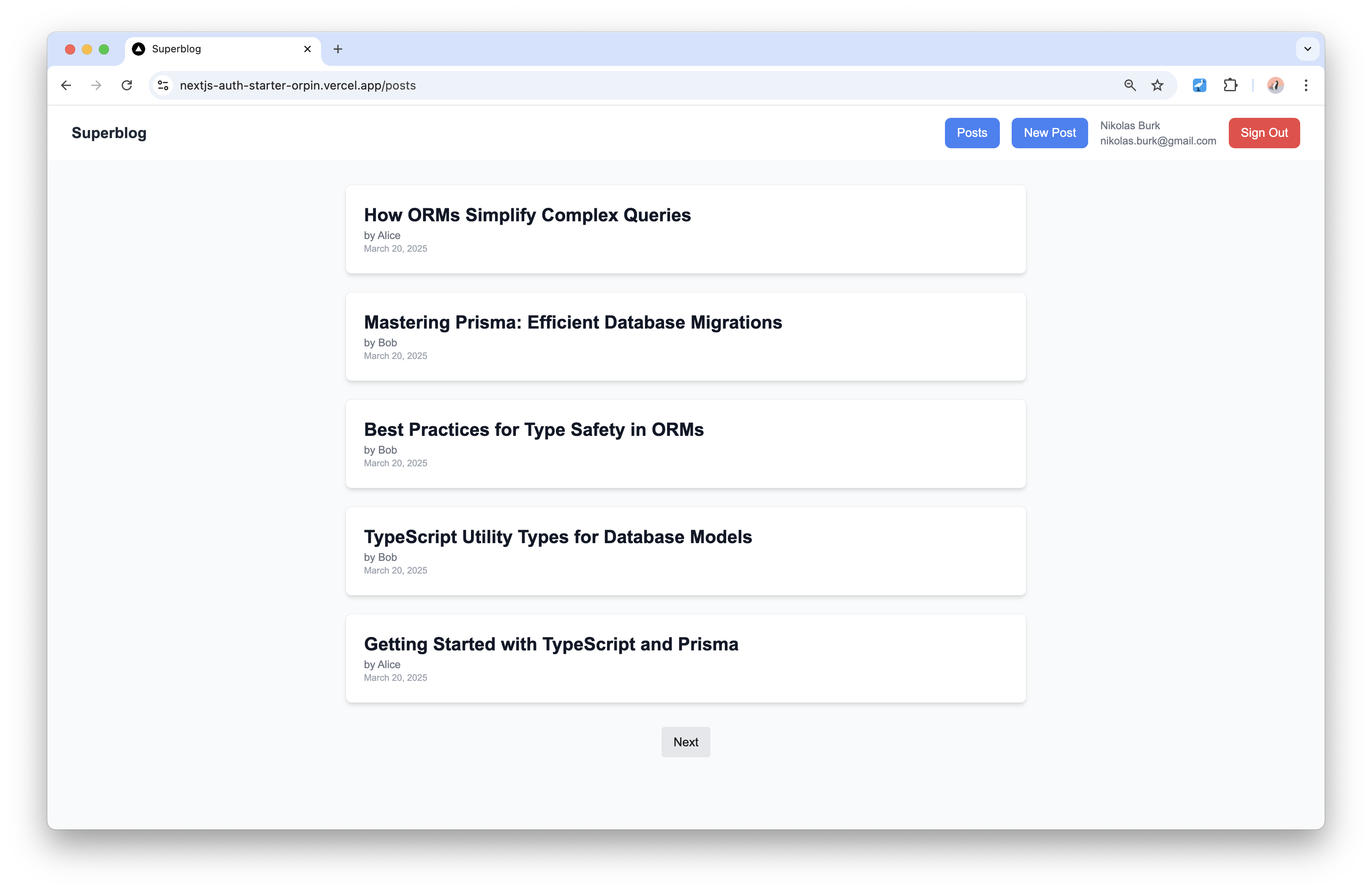 - Log in and sign up authentication flows via NextAuth.js