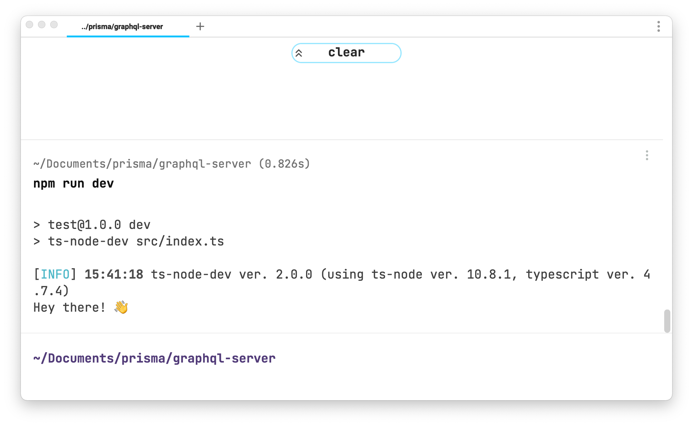 console.log('Hey there! 👋');Add a development script