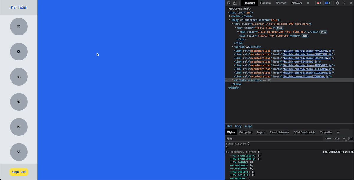Start off your home page by building a component that will list the site's users on the left side of the screen.