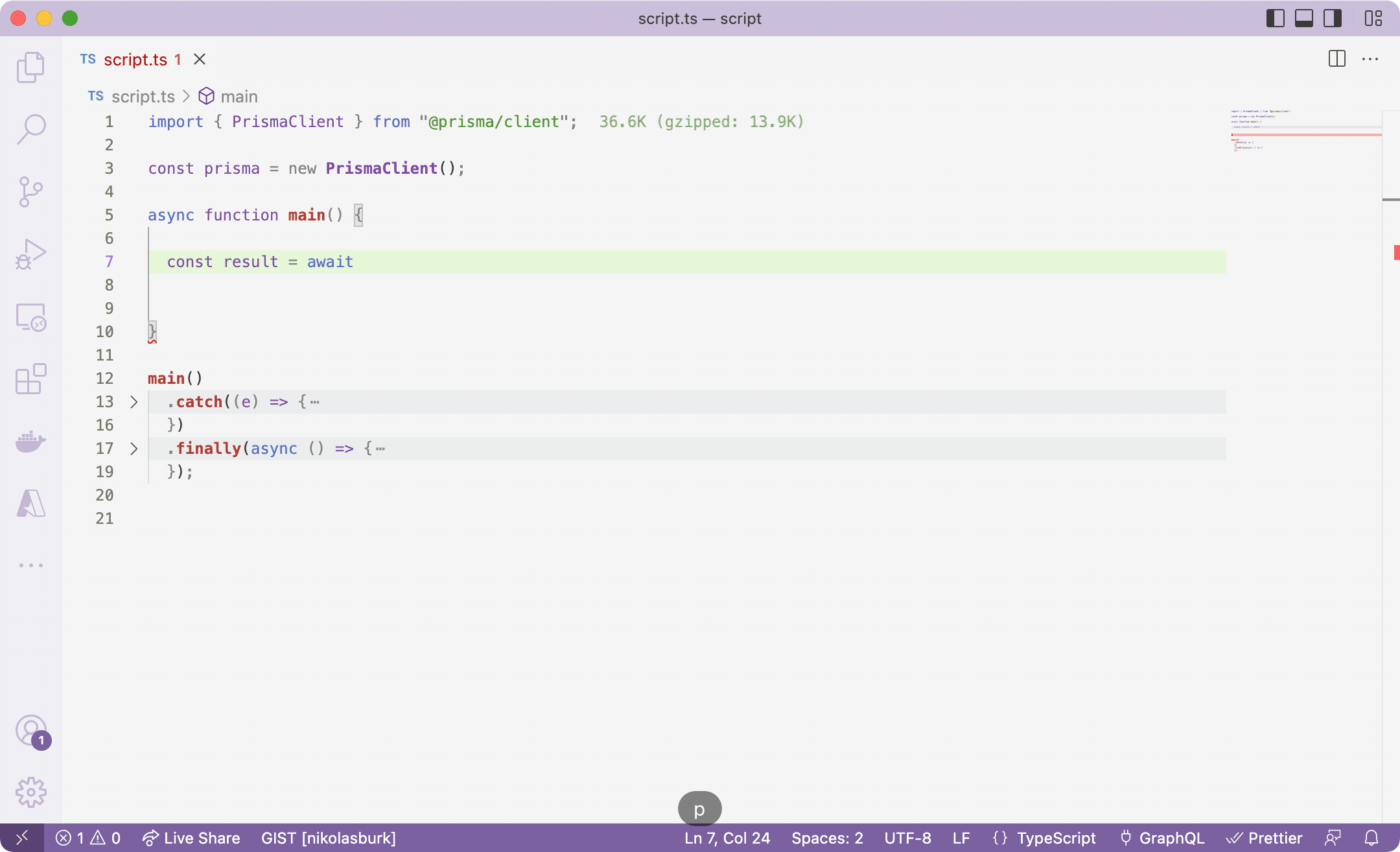 Similar to MongoDB, Prisma also provides a database client that you can use to query your MongoDB database: Prisma Client. One of the main differences between the two is that Prisma Client is aware of the schema you define, so it can help you write your queries via auto-completion.
