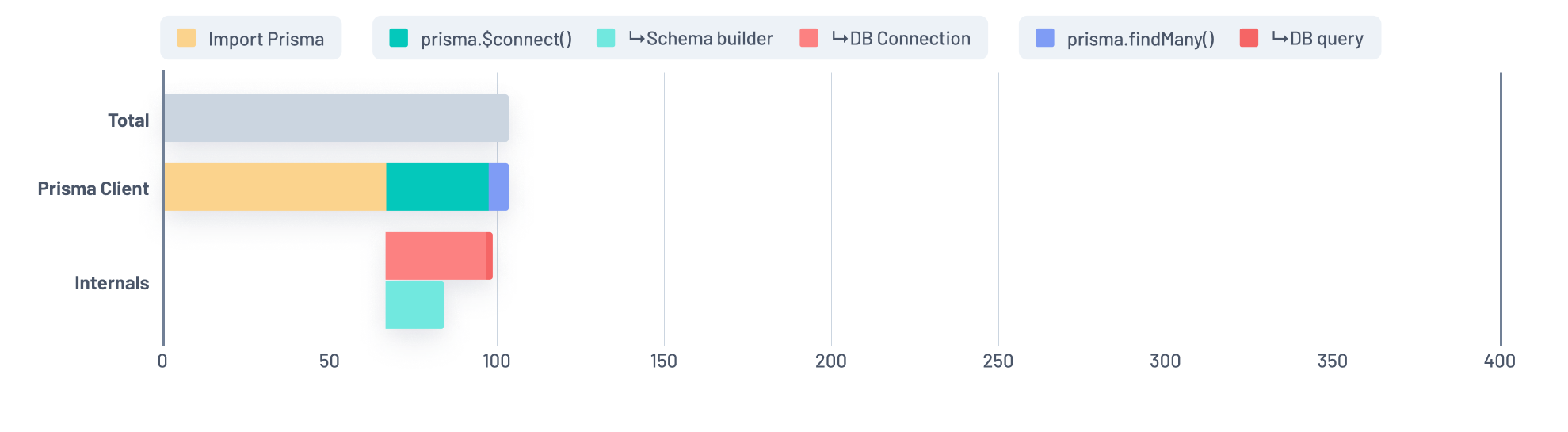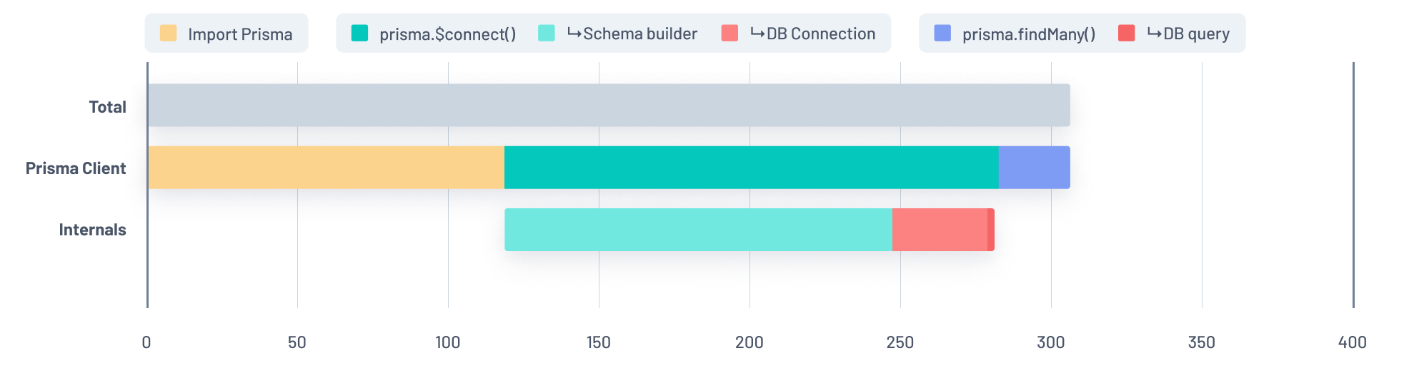 In addition, connection establishment and Prisma schema transformation now happen in parallel instead of running sequentially as they did before.