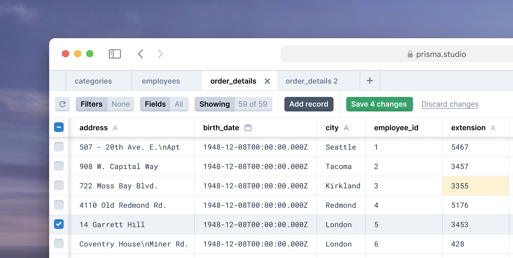 - Prisma Studio: Modern UI to view and edit data